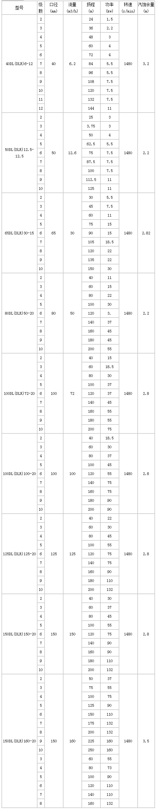 技術參數(shù): DL(DLR)型立式離(li)心多級泵(beng)