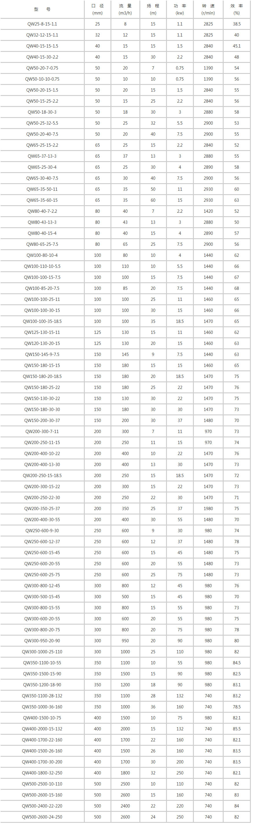 WQ(QW)系列潛(qian)水式無(wu)堵塞排(pai)污泵在(zai)引進國(guo)外先進(jin)技術的(de)基礎上(shang),在經我(wo)廠科研(yan)人員的(de)共同努(nu)力下,同(tong)時廣泛(fan)征求國(guo)内水泵(beng)專家的(de)意見,并(bing)經過多(duo)次改良(liang)而研制(zhi)成功的(de),經測試(shi)各項性(xing)能指标(biao)次達到(dao)國外同(tong)類産品(pin)的先進(jin)水平。潛(qian)水排污(wu)泵流量(liang):7∽2400m3/h,揚程:7∽60m等(deng),潛水排(pai)污泵根(gen)據使用(yong)介質,安(an)裝方式(shi)不👱🏼♂️同設(she)計制造(zao)成同性(xing)能參數(shu)的WL、YW、GW系列(lie)産品。