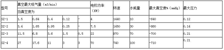 SZ系列水(shui)環式真(zhen)空泵的(de)用途及(ji)規格: